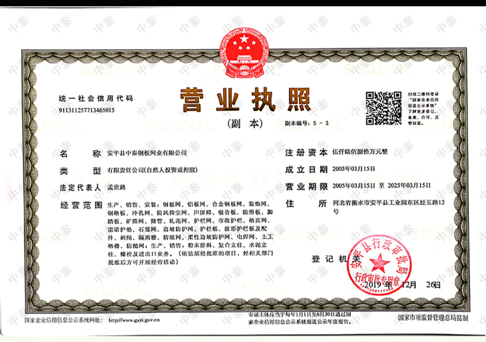 安平縣中泰鋼板網業有限公司,具有二十多年的發展,已成為集各種絲網的研發、生產、銷售為一體的大型企業,現擁有員工500余名,年產鋼板網、鋼格板、礦篩網、沖孔網等30多萬噸,是絲網行業大型骨干企業。我廠位于絲網產業基地、河北省安平縣,并在北京、廣州、重慶、沈陽等地設有分支機構。