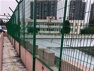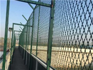 一般頂端都設有V型支架與立柱焊接。材料通常選擇和立柱同等材料或者稍小規格材料搭配使用。V型支架的加裝是為了將蛇腹形刀刺網固定在鋼網墻頂部,從而有效的增加防攀爬性和安全性。V型支架加裝防拆卸刀刺網。刀刺網的直徑一般為500mm、600mm、800mm,材質均為優質304不銹鋼,鎳含量8個以上。刺網芯線直徑為2.5mm、刀片長22mm,刀片寬度15mm,刀片厚度0.5mm。 蛇腹形刀刺網的排列密度不小于16圈/米,相鄰每圈間距不大于120mm 。