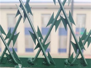 刀刺隔離網是一種防護、隔離能力極強的新型防護網產品。刀刺隔離網的網孔一般均為7.5*10cm、5*10cm、7.5*15cm、10*15cm等。鋒利的刀片焊接成網形成一道防攀爬具有嚇阻作用的安全屏障。